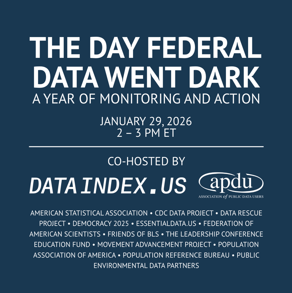 Join us as we mark the one-year anniversary of this takedown to discuss the current state of federal data and recognize the immense amount of work that has been done to defend these public resources. Leaders from the data community will share insights on monitoring tools they have developed and the actions being taken to safeguard essential federal data.